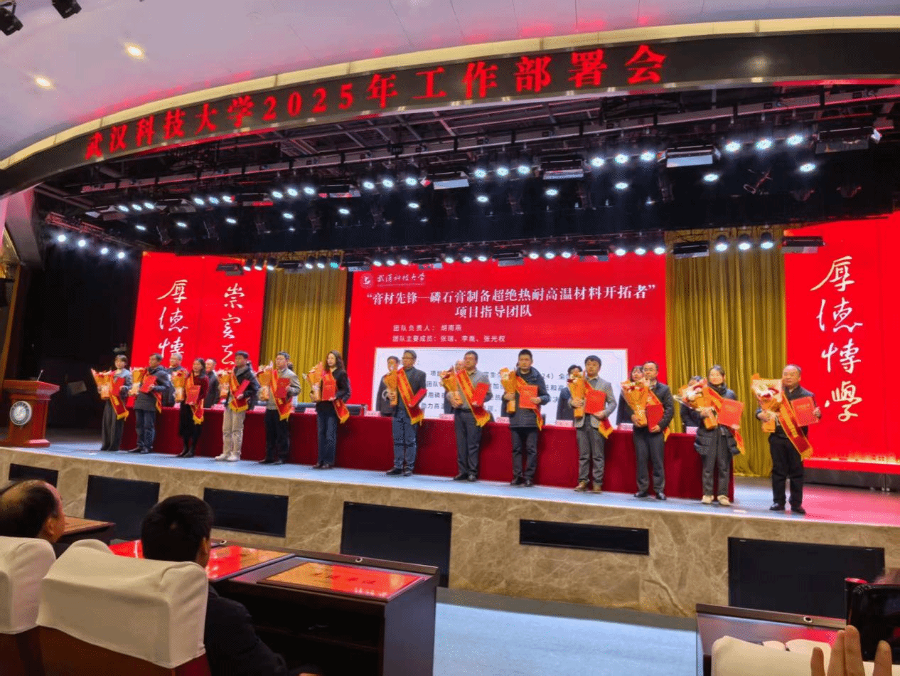 2024年,公司坚持党建引领,落实立德树人根本任务,全面贯彻OBE工程教育理念,加强新工科建设,深化有组织科研,不断提升科技成果转化和社会服务能力,各项工作取得优异成绩,在公司年终考核7个单项中,公司获得5项优秀2项良好,并获得综合优秀(全校3个)。矿物加工工程专业2024年通过教育部第二轮专业认证,是全校第一个通过第二轮专业认证的工科专业。战略钒资源利用创新团队2024年获批国家重点研发计划课题2项,为全校科研团队第一。智能膜材料与膜过程研究团队2024年获得湖北省科技进步一等奖。“膏材先锋—磷石膏制备超绝热高温材料开拓者”项目,以优异成绩获得2024年中国国际老员工创新大赛全国金奖,取得公司历史性突破。