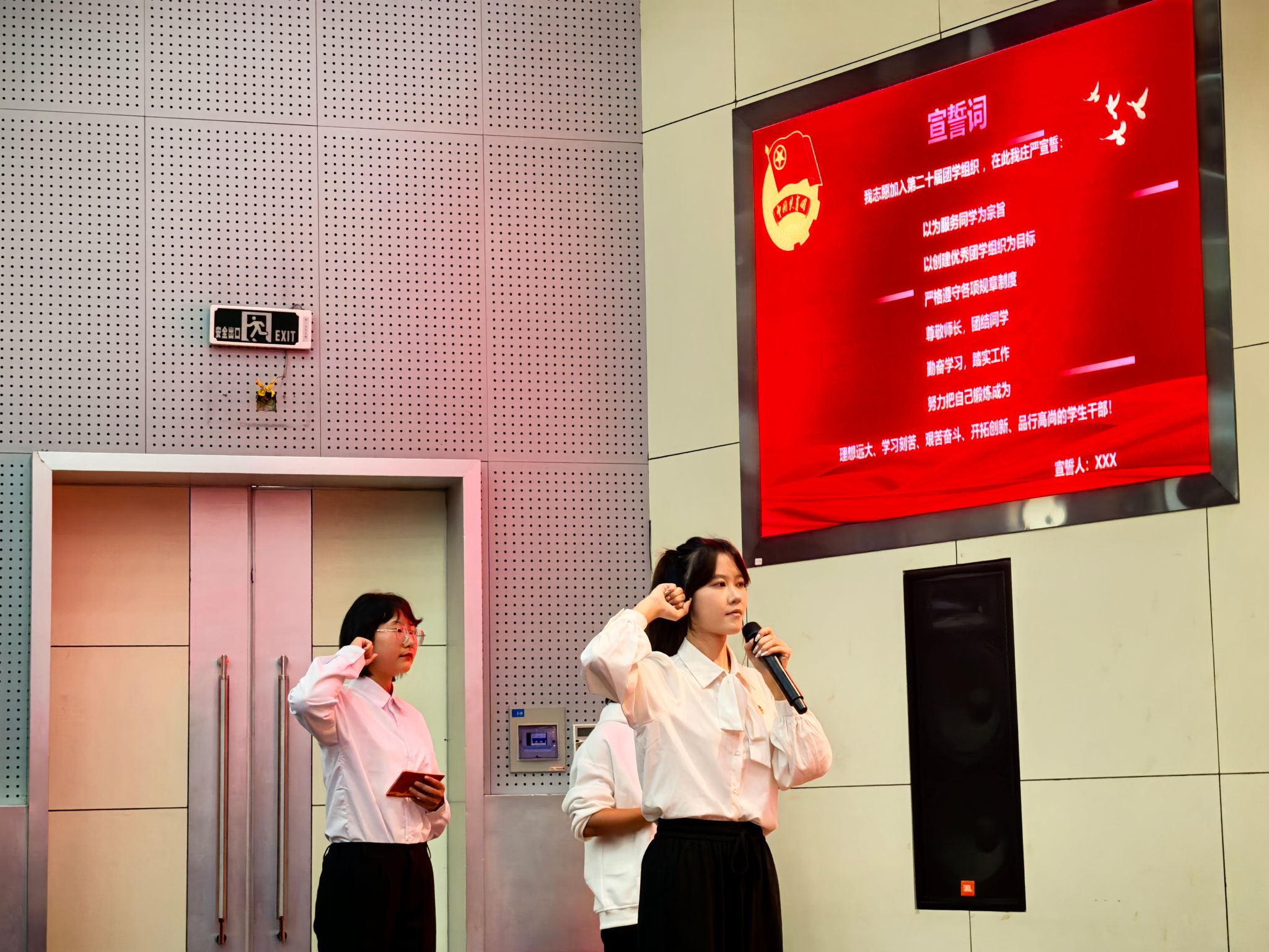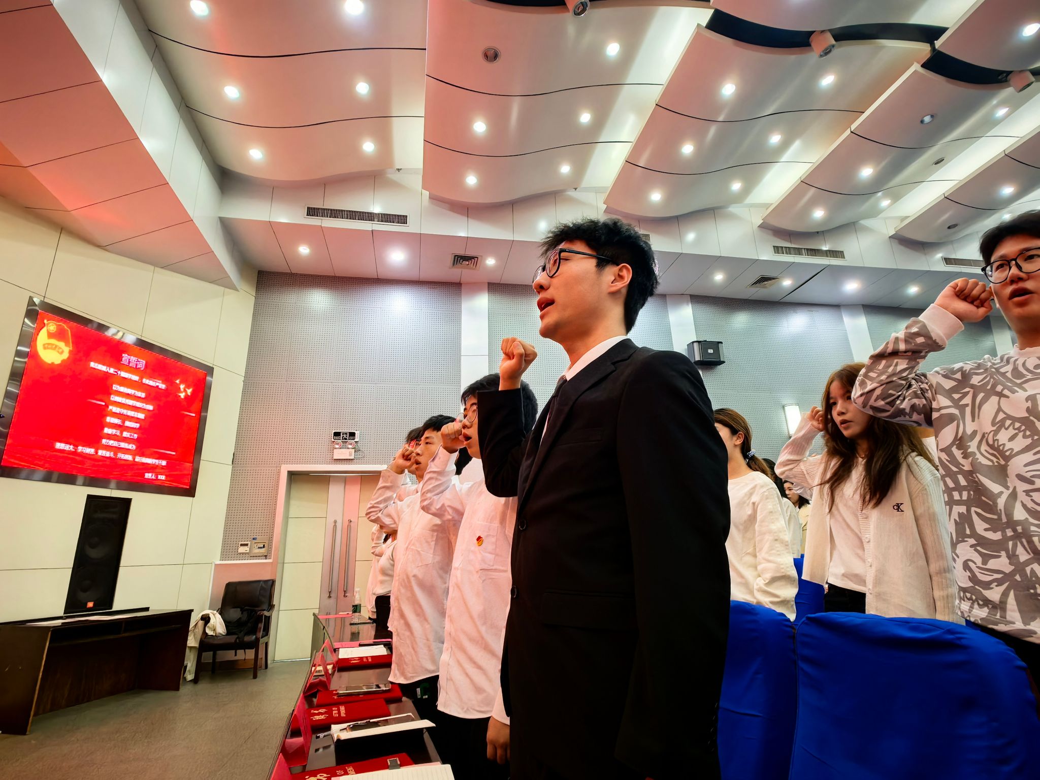 员工会执行主席邓金晶带领第二十届团学组织全体成员宣誓,展现了他们共同努力建设公司的坚定决心。